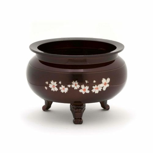 桜彫シリーズの木上香炉です。真鍮に紫檀の色付けをし、桜の彫を施しました。現代的なデザイン色調でありながら、色、形を問わずどのようなご宝前にも相性のいいシリーズです。