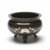 菊彫シリーズの木上香炉です。職人が、真鍮に漆を焼き付けて一つひとつに模様をつけ、丁寧に仕上げています。