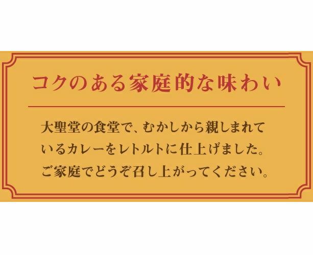 他の画像を見る まとめ買いお得!! 【10個セット】大聖堂食堂カレー ¥ 5,000 税込 販売期間 〜 2025/12/15 23:59 10%OFF!! 定価5,500円→5,000円 カートに入れる お気に入りに登録する