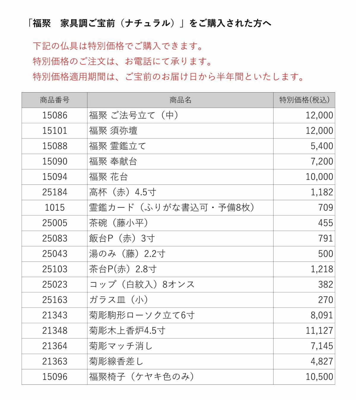 - 洋間にも和室にも合う現代風で、いすに座ってご供養をあげることができます。