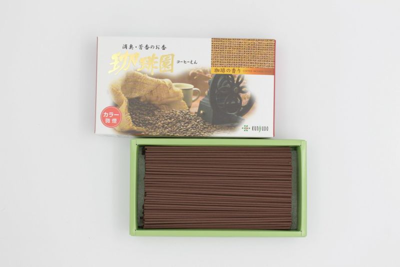 コーヒーの芳ばしい香りが広がる煙の少ないお線香です。
