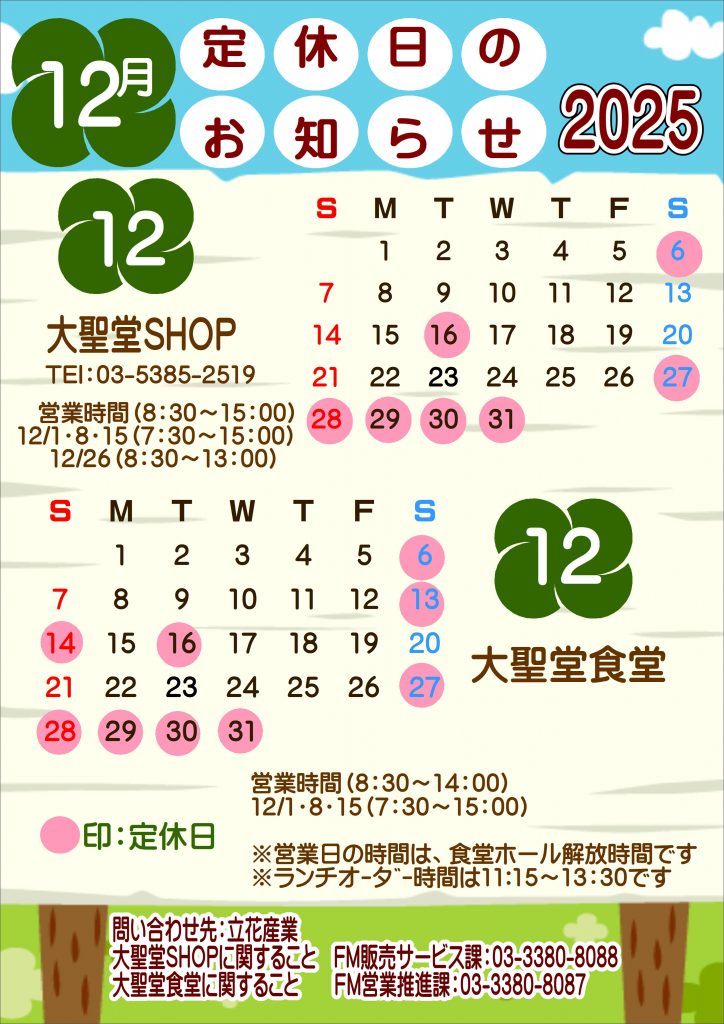 大聖堂ショップや食堂のお休みを確認の上、ご来店くださいませ。