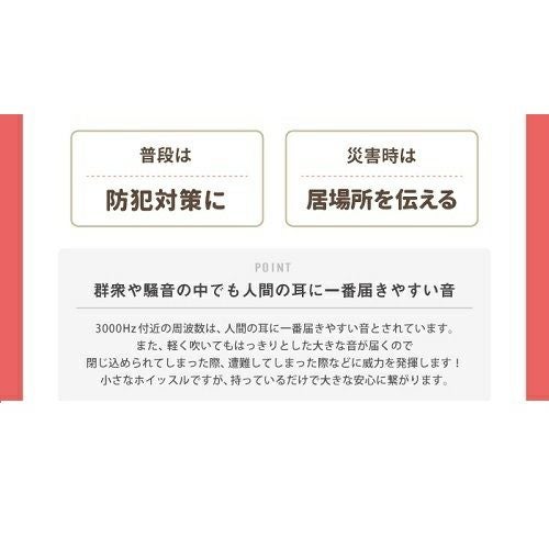 他の画像を見る 緊急用ホイッスル あんしんホイッスル ¥ 253 税込 強く吹いても弱く吹いても人の耳に届きやすいホイッスルです。緊急時に居場所を知らせ助けを求める際に役立ちます。 カートに入れる お気に入りに登録する